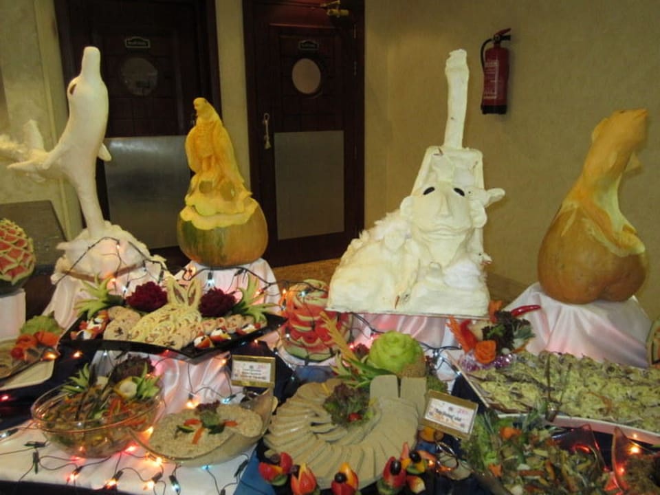 Silvesterbuffet - kunstvoll geschnitzte Figuren