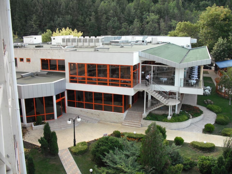 Blick von unserem Zimmer auf Restaurant und Außenrestaurant