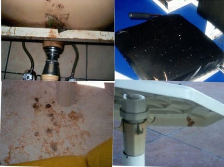 Das Waschbecken von unten war echt ein Blickfang!! Sonnenschirm mit Tisch total verschmutzt mit Kaugummi geschmückt. Fitnessgerät: Der Sitz ist klebrig und schmutzig.