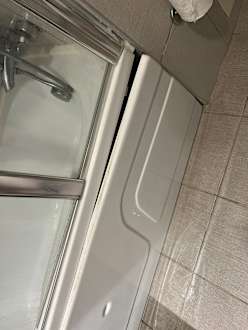 Im Bad fällt die Verkleidung ab.