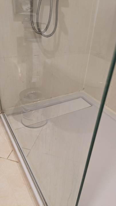 viele Flecken an Duschverkleidung