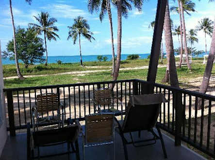 Ausblick von der Villa auf Palmen und Meer