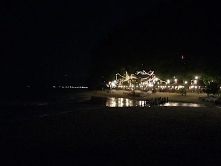 Strandrestaurants bei Nacht, 3 min zu Fuß entfernt