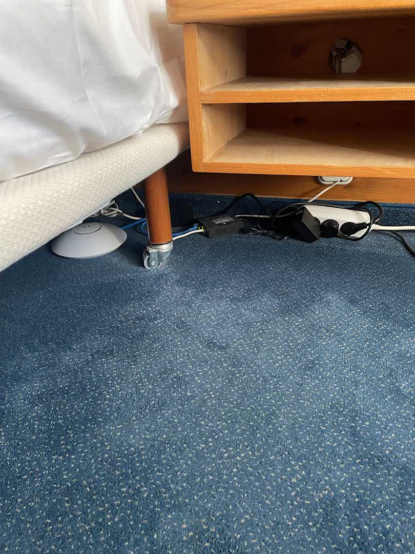 Freie Steckdosen, Wlan Spot frei zugänglich unter dem Bett.