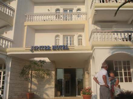 JupiterWejście główne do hotelu Jupiter. Po lewej stronie basen i bar, duży ogród, po prawej ogród.