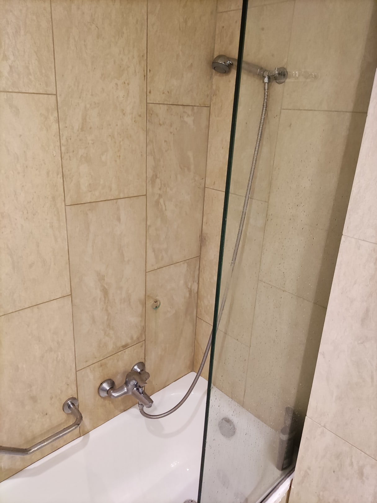 Duschkopf hält kaum und ist so tief, dass man ihn immer in der Hand halten muss.