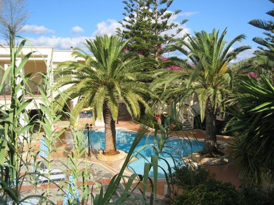 Blick auf oberen Pool im Garten