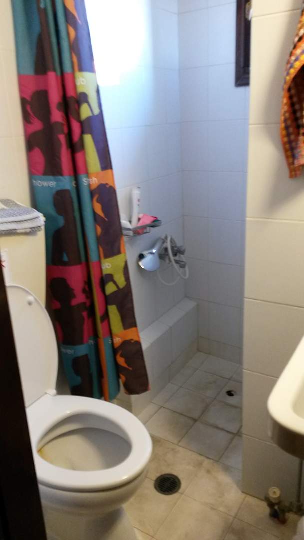 Dusche , Toilette, Waschbecken. Den Duschkopf konnte man noch nicht einmal aufhängen.