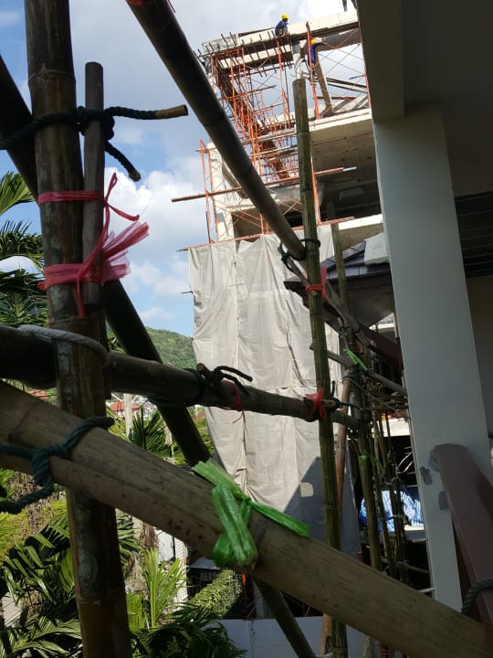 An der Gartenanlage war nach dem Regen eine regenrinne ko. Abetruerliches Gerüst