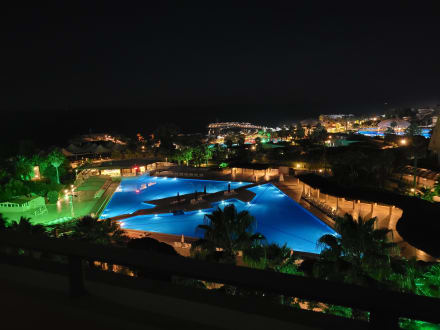 Außenanlagen mit Pool bei Nacht