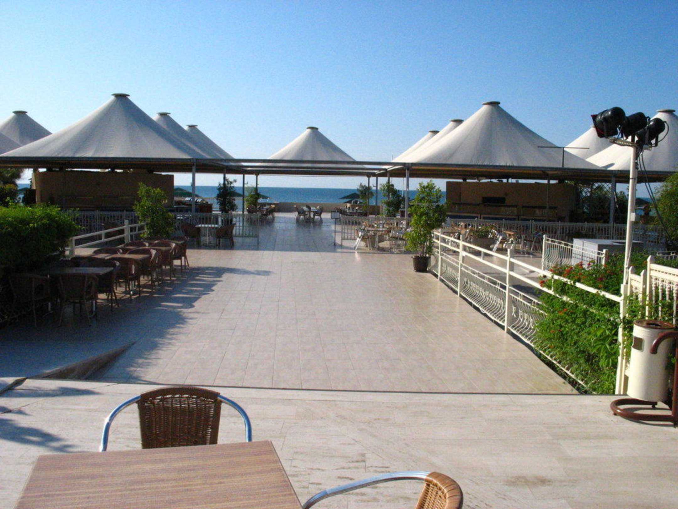 Blick von der Poolbar zum Strandrestaurant