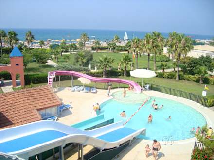 Blick von denRutschen zur Gartenanlage und Meer