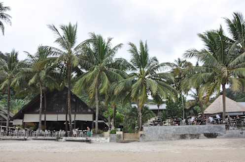 Blick vom Meer zum Hotel