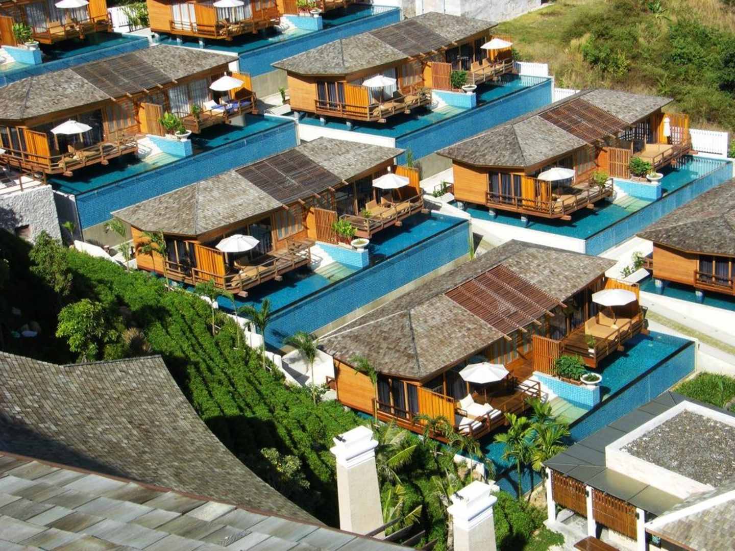 Blick vom Dach auf die Villas
