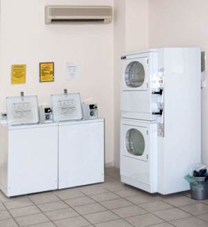 Der Waschraum liegt gegenüber des hauseigenen Supermarktes.