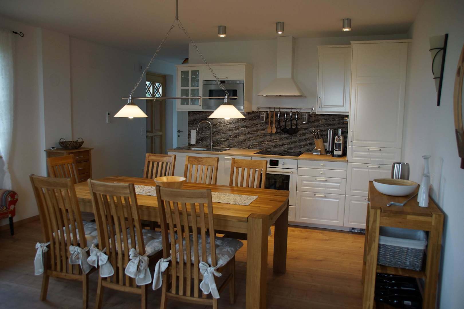 Wohn- EsskücheKüche mit großzügigem Eßbereich, voll ausgestattet mit Geschirrspüler, Nespressomaschine, Wasserkocher...