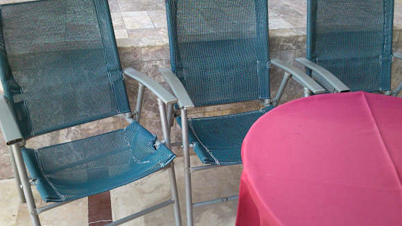 Versiffte Möbel außen am Pool