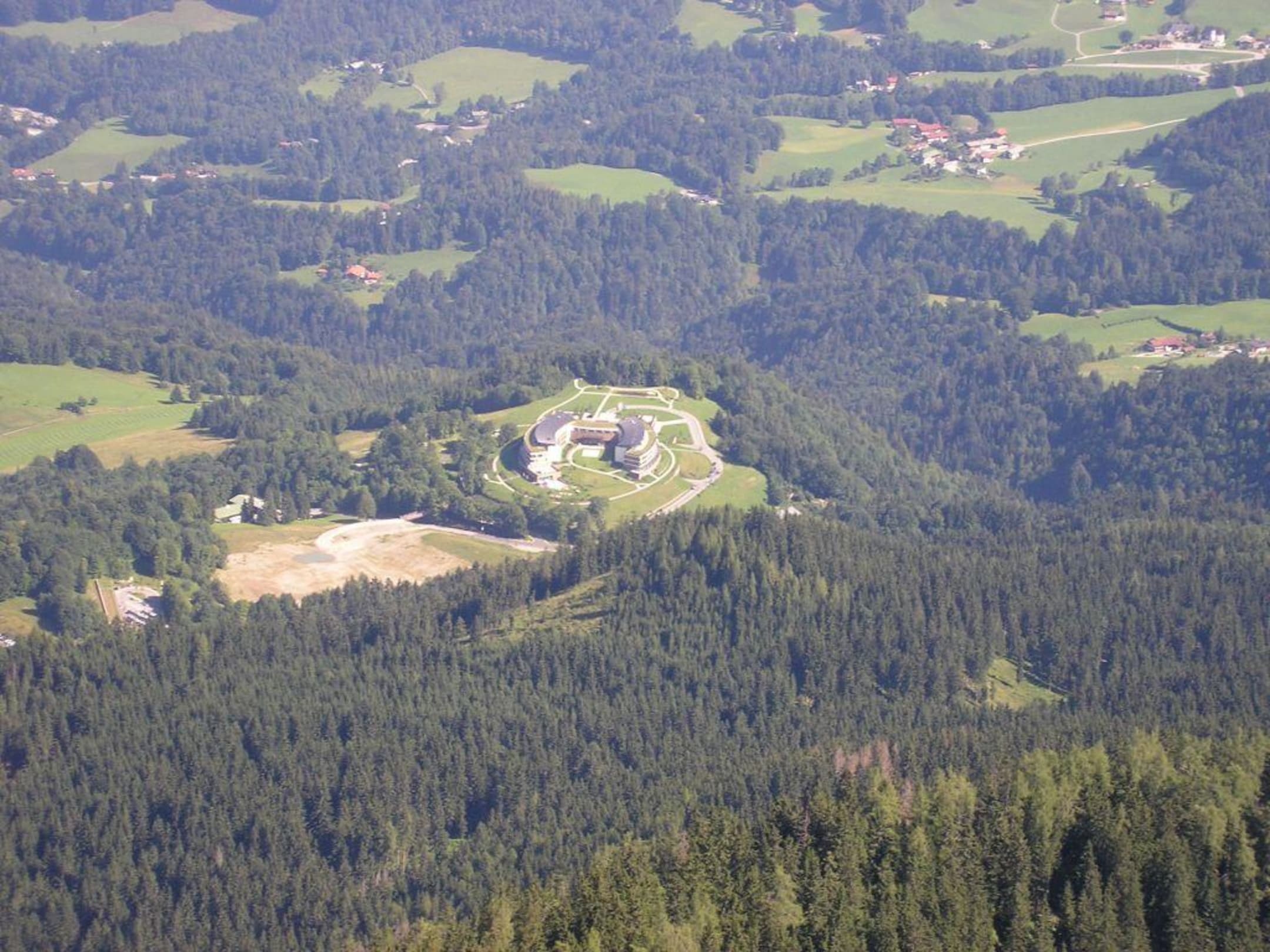 Das Hotel vom Kehlsteinhaus aus gesehenBlick auf das Hotel Interconti Berchtesgaden (mit Zoom vom Kehlsteinhaus aufgenommen).