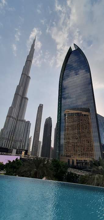 Blick vom Pool zum Burj Khalifa