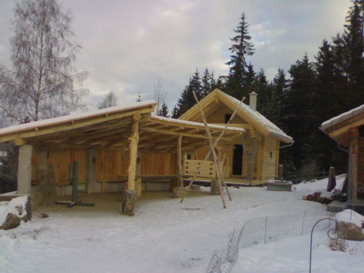 Im Hintergrund wird ein neues Blockhaus gebaut!