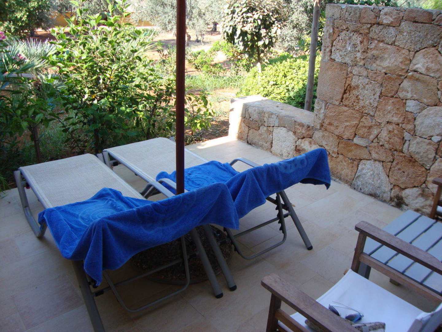 Ausblick auf den Sitzplatz des Bungalows