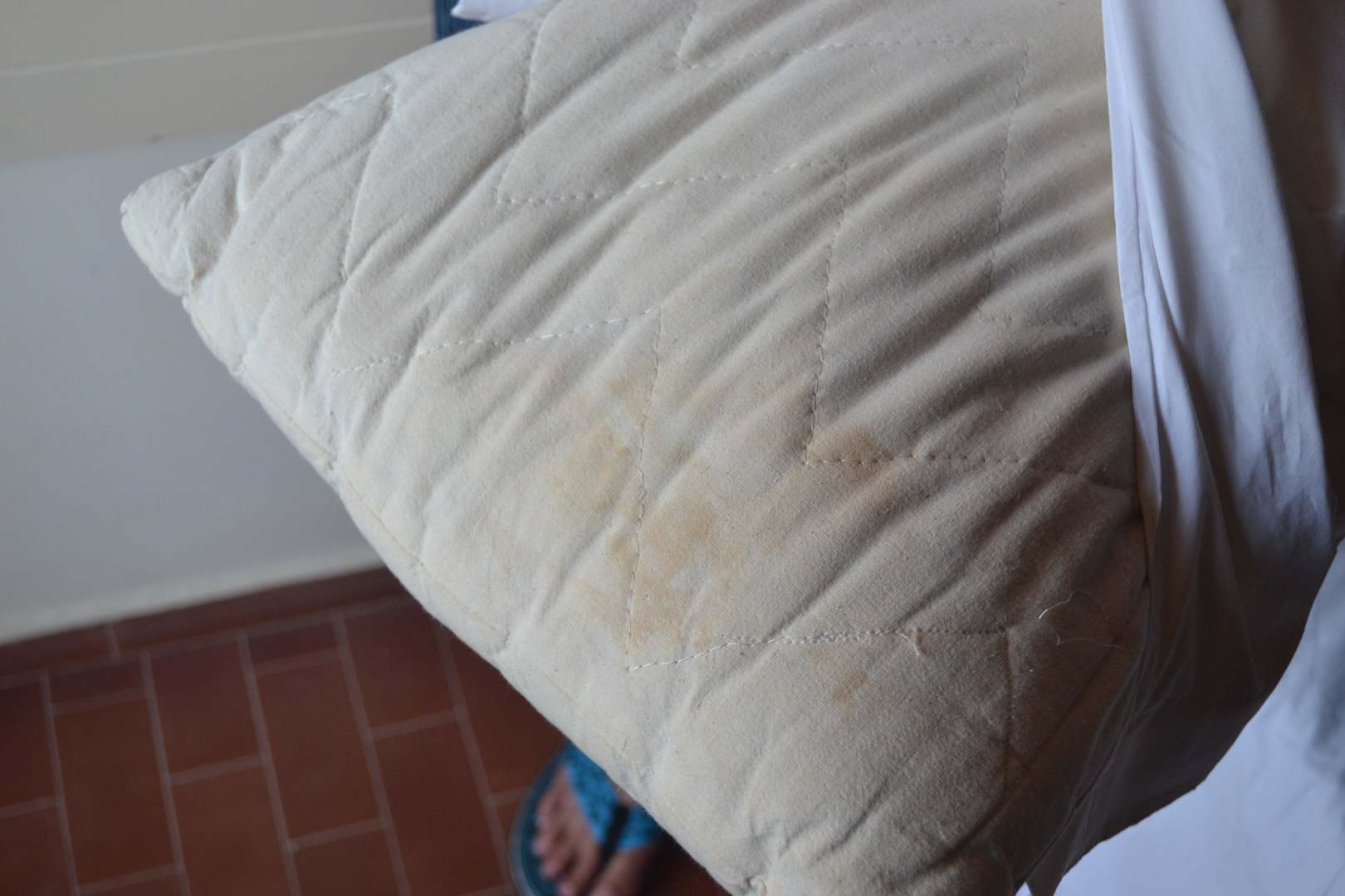 Auf diesem Bild sehen wir ein 4 Sterne Hotel Kissen- wer möchte denn darauf schlafen?