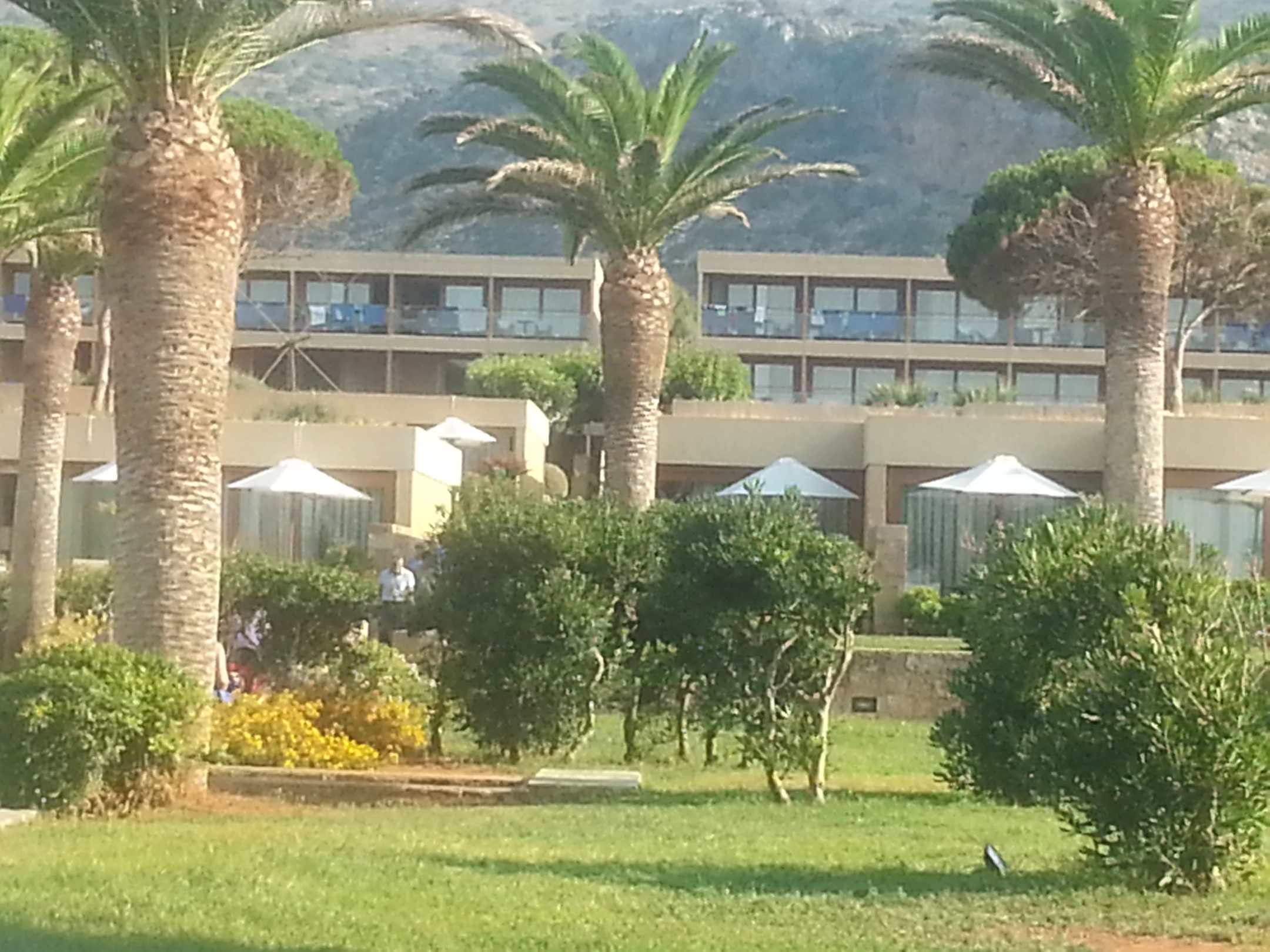 vom Meer aus mit Blick auf die Gartenanlage und das Hotel. Der Weg zum Strand 2 Minuten......