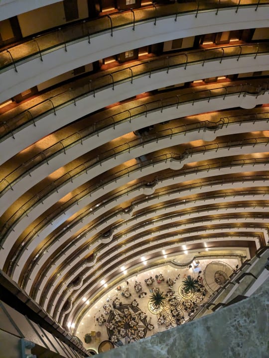 Blick aus dem 17. Stock nach unten. Hier stehen die meisten Tische des Restaurants.