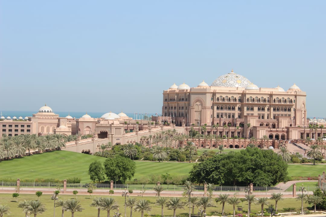 Ausblick auf das Emirates-Palace vom Zimmer aus.