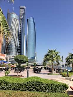 Blick vom Strand auf Etihad towers