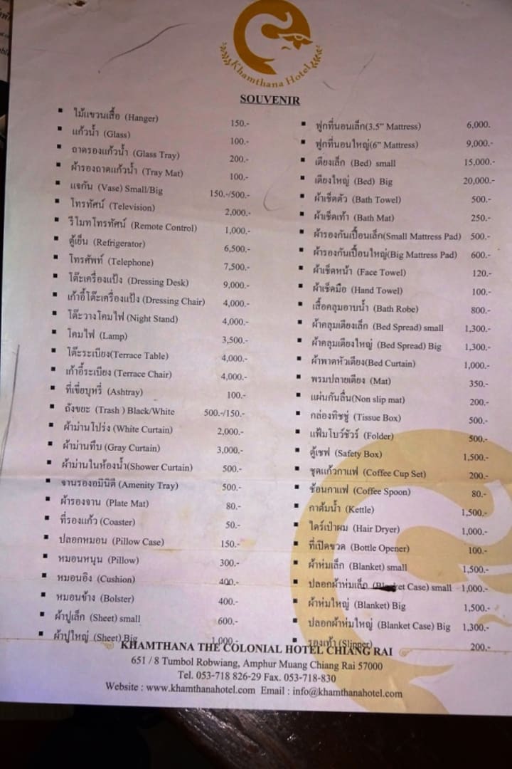 Zimmereine Preisliste für alles was man im Zimmer vorfindet (und mitgehen lassen will ?, danke für das Vertrauen !).