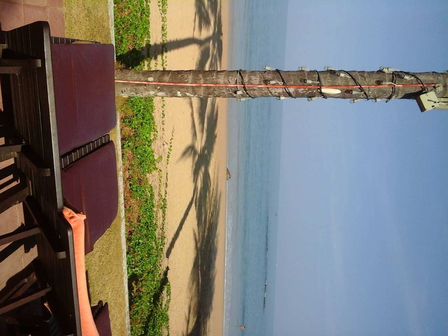 Blick von den Liegestühlen auf den Strand
