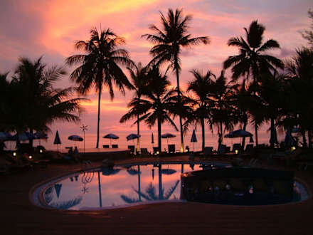 Blick vom Pool in Richtung Meer beim Sonnenuntergang