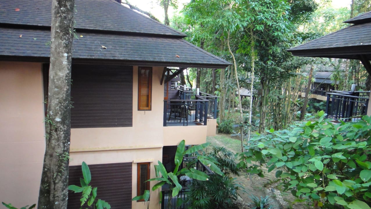 Blick auf Zimmer und Gartenanlage