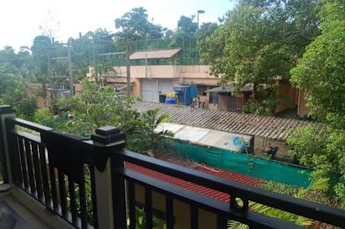 Dies ist der Blick vom Balkon auf das Notstrom Kraftwerk des Hotels. Bei Stromausfall ist der Lärm unerträglich. Der Strom fällt in Khaolak oft aus. Diese Zimmer bekommt man, wenn man Blick in den Garten gebucht hat!