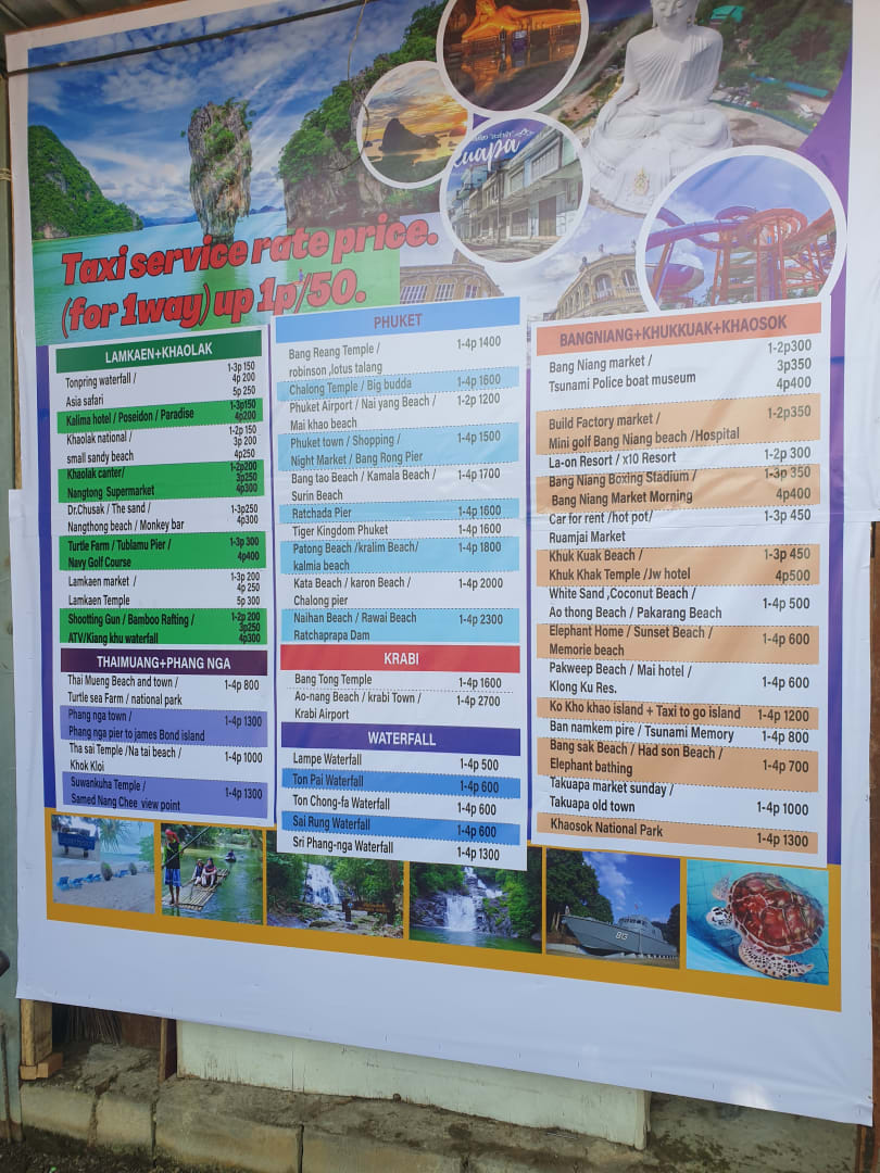 Taxi Preistafel vor dem Hotel