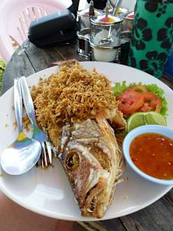 Sehr guter Fisch beim essen am Strand