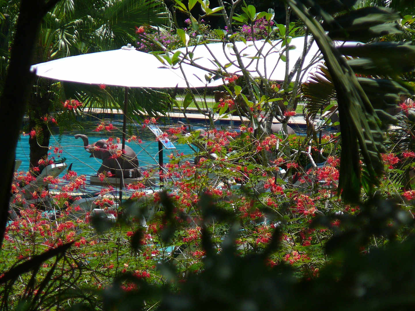 Der Innenpool durch die Blumen