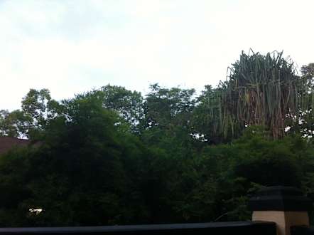 Ausblick vom Balkon. Unterhalb is Notstromaggregat