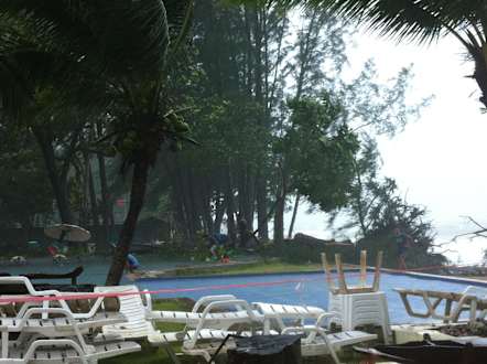 Pool am Strand. Nach Unwetter Baum reingefallen