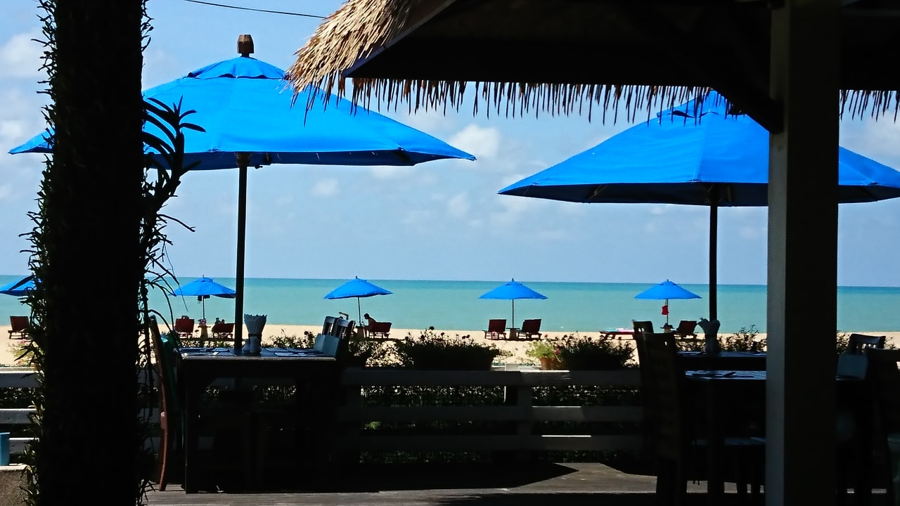 Blick vom Restaurant auf den Strand