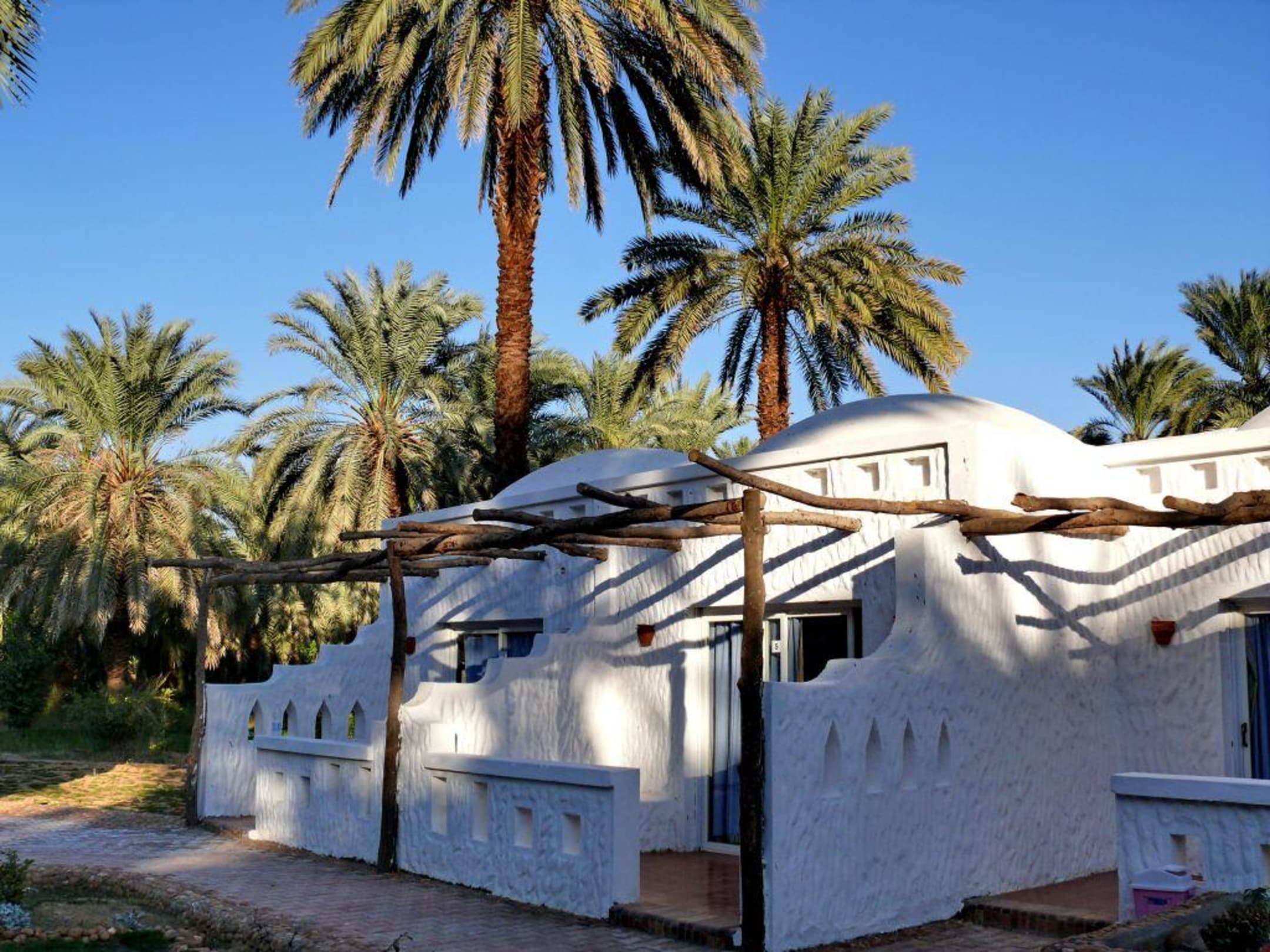 Die Bungalows, in denen sich die Zimmer im Kharga Hotel ind der Oase Kharga befinden