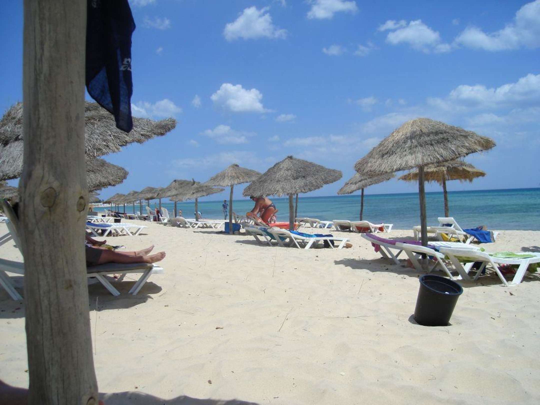 Opustoszała plaża hotelowa w godzinach obiadu