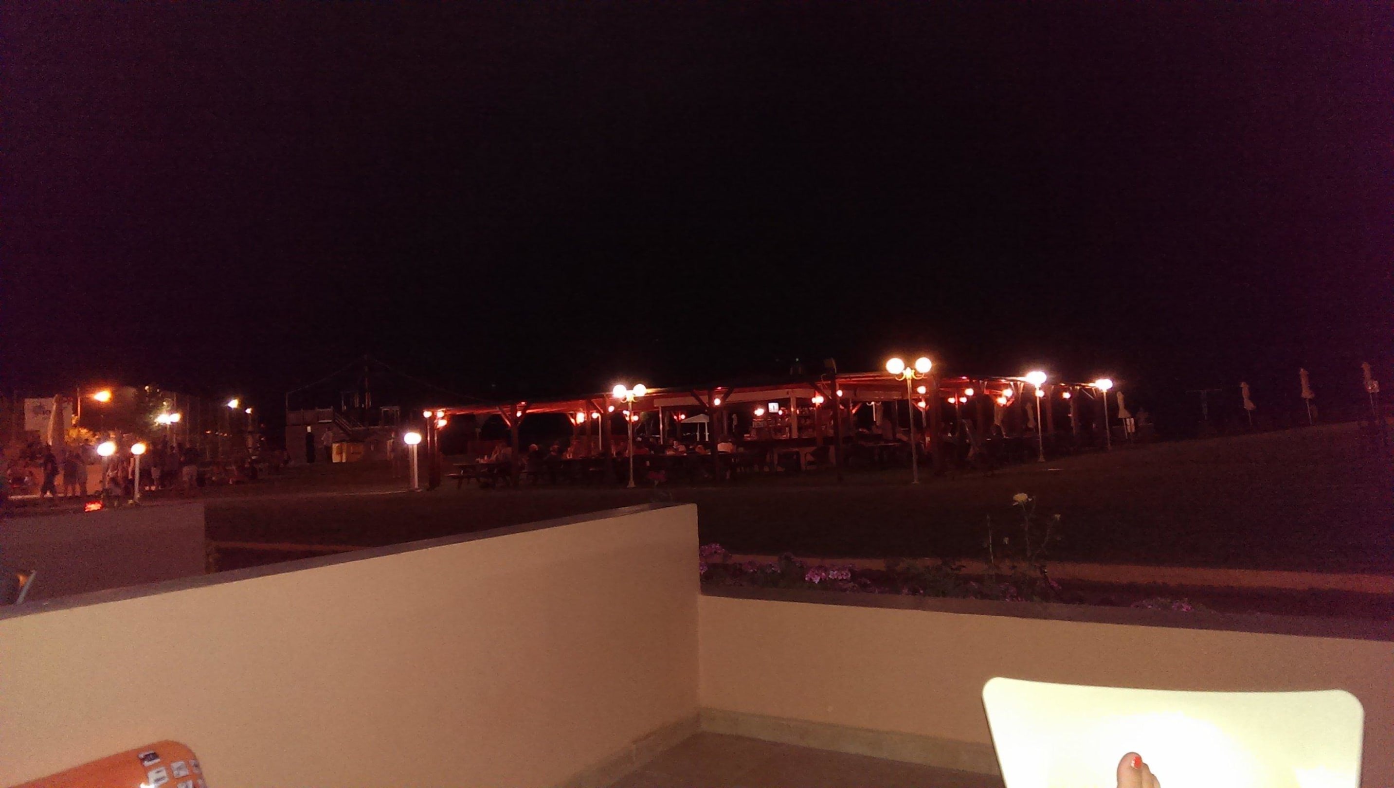 Blick auf die Pool/Beachbar am Abend.
