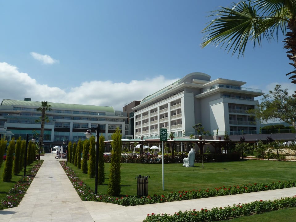 Garten mit Blick auf das Hotel