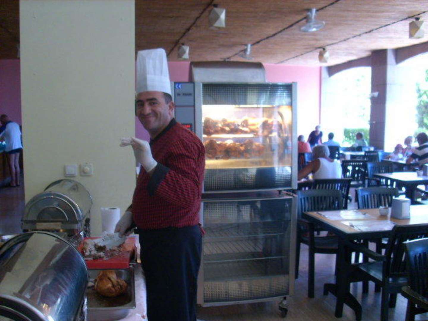 Hähnchen Koch!Hier ist unser Koch aus der Snackbar zu sehen,der die Hähnchen fachgerecht zerlegt!! hhhmmmm,lecker!!