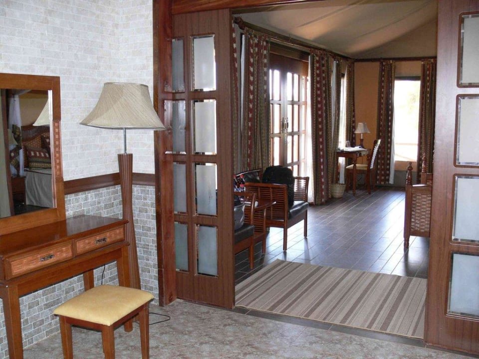 Blick vom Bad in das Zelt. Übrgangsbereich Bad zum Schlafbereich.