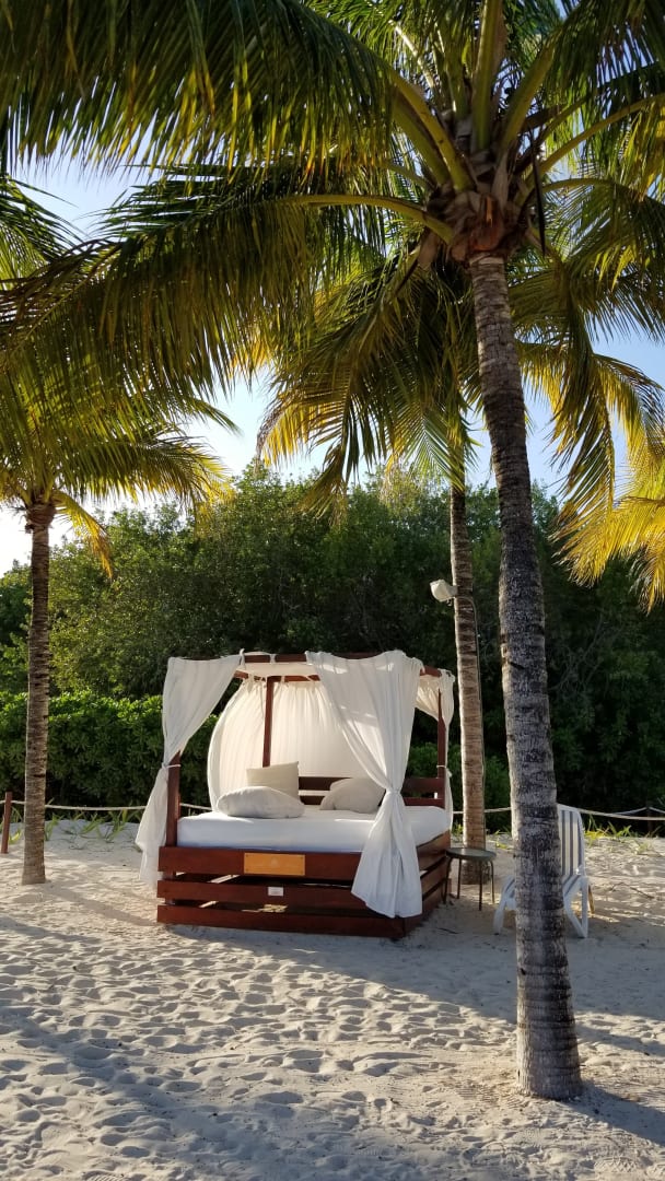 StrandEines der Himmelbetten am normalen Bereich des Hotelstrands.