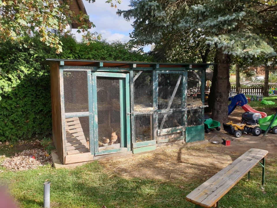 Hasengehege auf dem Spielplatz
