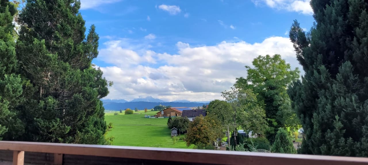 Blick vom Balkon auf die Berge